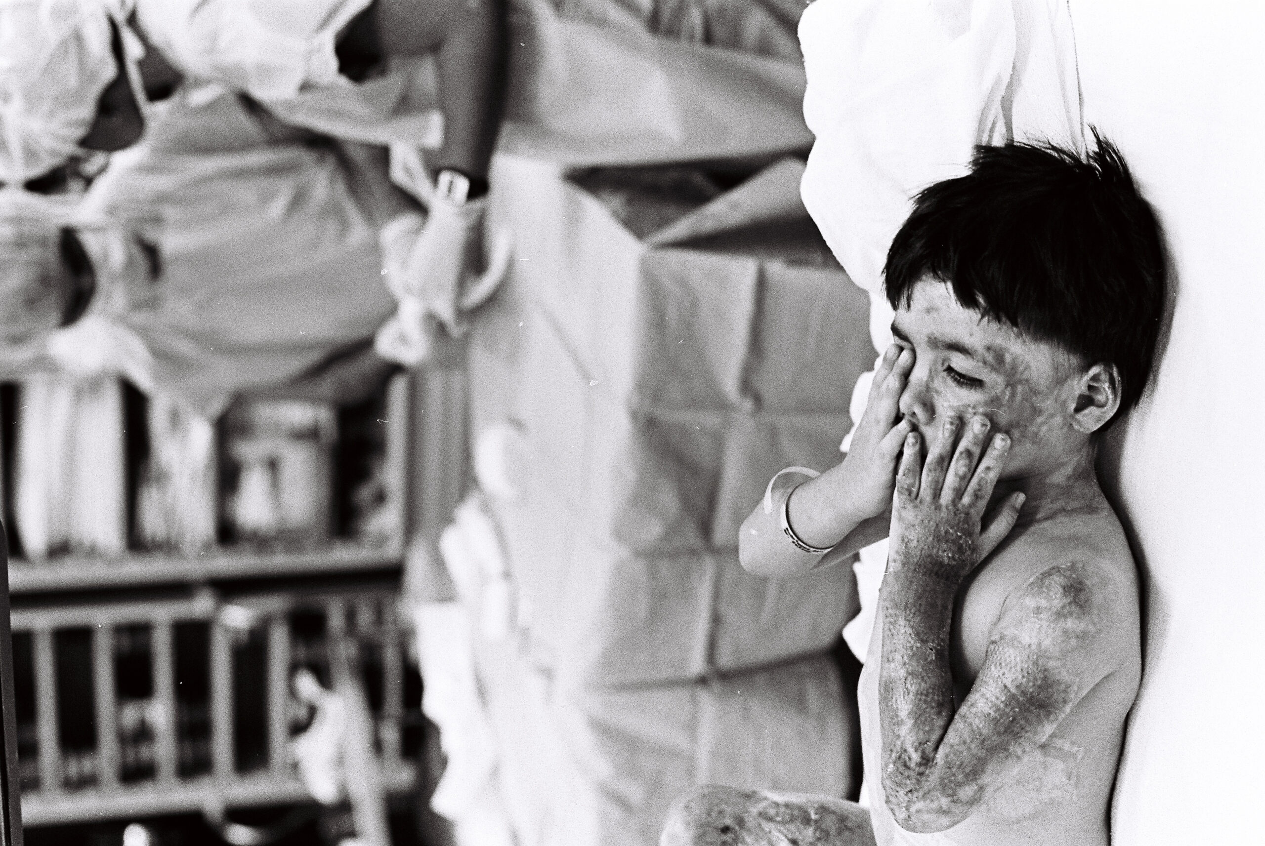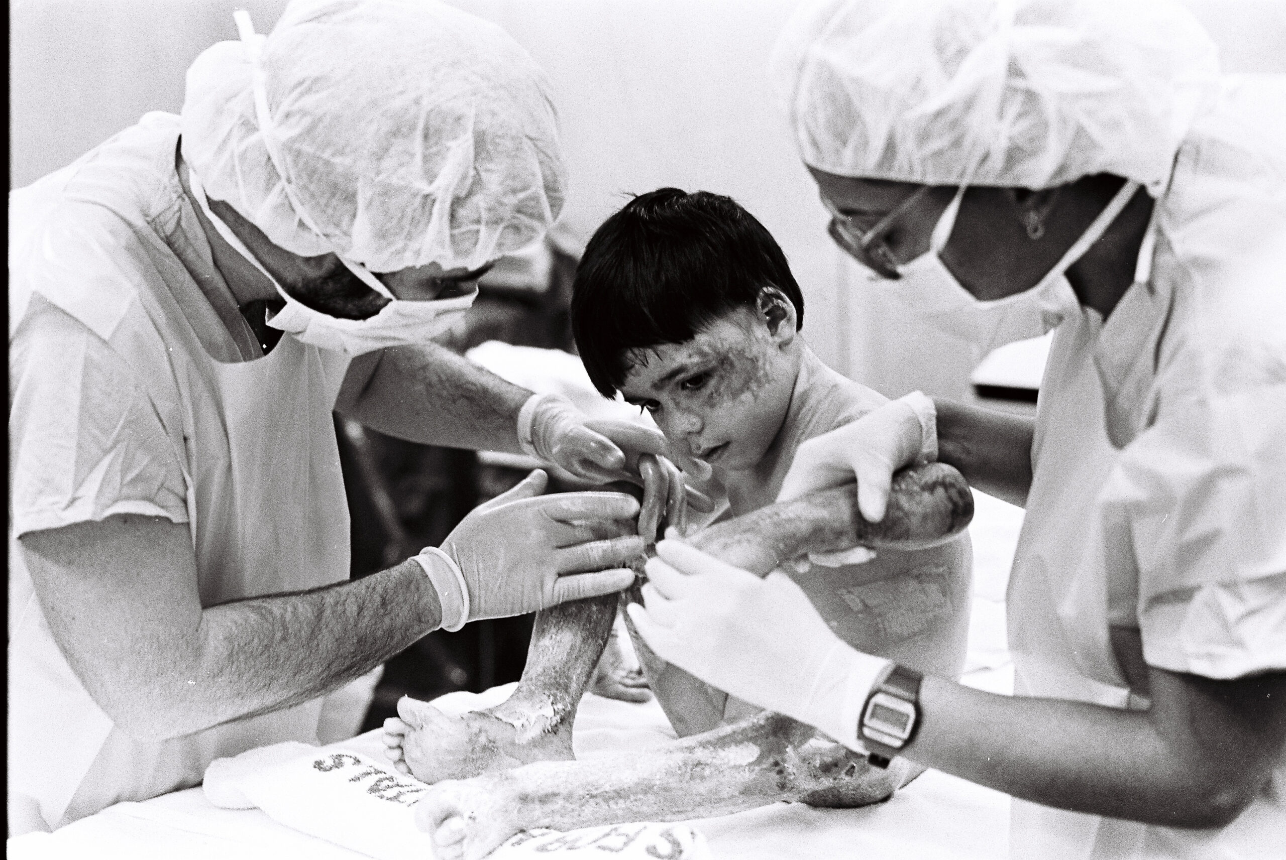 Bill: I realized, we all realized that this is more than just a scattered, indiscriminate fire thing going on in Hoboken. There was a pattern to it. It always fit the same pattern. It always fit in the middle of the night someone torching the hallway, you know, they knew what they were doing. I started working with a reporter, Chuck Sutton. He was a good reporter. He was compassionate. Chuck and I every day, we would both come in. We get in the news from we go, Chuck, what do you got going on today? He says, nothing much. But tomorrow! I’m gonna be meeting with a classroom, an art teacher and her students. And the art teacher asked the students to put into drawings what they experienced or what their thoughts are in the fires in Hoboken at that point because some of the kids were directly affected either by relatives or by friends of friends or other families that they knew, school kids, you know. So the kids did basic elementary school artwork, you know, drawings, and, really, really powerful stuff, you know, showing flames coming out of the buildings and people in the air, stuff like that. So we would cover stories like that. Anything in regards to the fire, fires that were going on at that point. Also coupled with that, we also focused on how people were being vacated from their buildings, you know, renters, how they’re being basically thrown out of their living space so the building could be renovated for more money. You could sell for way more money. So any story like that, we jumped on it and that’s an example of how we existed day by day. And that’s, that’s just on that side. On the other side, the obvious are covering the fires themselves. Honestly, after a while, that grew old because there was no response. There was no, oh we’re gonna tackle this problem. You know, we’re gonna deal with it. We’re gonna find out what’s the root of all evil, what’s going on here. None of that. And, basically, we just get pissed off. We were like, are you kidding me? You know? Like, you gotta stop this. I mean, you can, you have to stop this. Kids are dying. So, lo and behold, we got a call from a burns center, Saint Barnabas Burns Center out in I don’t know, it’s out West a little bit. And there was a doc who, burn doc, who ran the burn unit there, and the burn unit there was always busy. They took in burn cases from all over New Jersey. They were helicoptered in, because they were such a specialty. They were the place to go if you had any serious burns that’s where you went regardless of where you were. So we started noticing the state police helicopter with medical personnel landing in Hoboken Stadium pretty often and getting patients from Hoboken into the burn center in Saint Barnabas. So we got a call from the head doctor there and he was pissed. He was just angry. He kept seeing people coming in from Hoboken. He was just mad. I mean, he went from compassionate to just mad. And he said, you have to see this. I’m inviting you out here. We have a family here from Hoboken. You have to see that. And see what it’s like for these folks to go through what they’re going through. So we jumped on it. Myself, and a reporter, Lena Summ, who’s still working, she’s down at the Washington Post now. We went and we photographed this poor kid going through what he went through every single day while he was in the burn unit. What they do is they peel off the dead skin from your body and they put in… It’s artificial skin layers, if that makes any sense. Applied that, and it was just excruciatingly painful. You could see it. All the folks in that burn unit were on really high doses of various painkillers, morphine among them. That’s the only way you can deal with it, deal with the pain of having your dressings changed every single day. So, I photographed them. His name was Joey, and we photographed him going through this process. And, you know, to do that, the folks that work there, god bless them, you know, they dealt with this every single day, and they just were so clinically professional. Professional human beings, you might say, because to deal with that and then leave there and go home. Like, how was your day? Oh, you know, it’s no easy topic and no one else outside yourself, unless they work at a burn center or in a hospital setting, they can’t relate to it. So you have that. You hold that experience when you go home. Never mind the patients. They hold that their entire lives, you know. So, we photographed this poor kid going through what he went through, in one day, one session. The pain was just quite evident. He had very serious burns, including to his genitalia. It was just horrific, and that really put everyone to the test. I’d bring the pictures back, and I didn’t sugarcoat anything. There’s just no way we’re gonna sugarcoat this. The photos are strong. They’re very strong to this day, and they probably won’t be published anywhere that I think of to this day. But the atmosphere at that point in time in Hoboken was that we have to publish these photos. We just have to. And no one questioned it. All the editors were like, let’s do it. No one questioned it. Oh, it’s gonna upset our readers, you know, blah blah. No. Let’s do this. So we ran a full page of really powerful photos, really powerful. I mean, if if this didn’t touch you, you’re not human. Speaker1: Lo and behold, we start seeing responses from government types in City Hall. The federal government actually came in. They said that they had some protocols, programs that they can do. Go into the schools, you know, educate people. That’s when the tide started turning. It was really amazing to see because you just get so used to seeing something day after day, day after day, day after day, and becomes commonplace, becomes like, yeah. It’s no big deal. It’s just another fire. You know? But those pictures, I think, and the accompanying story really, really, put the brakes on tha