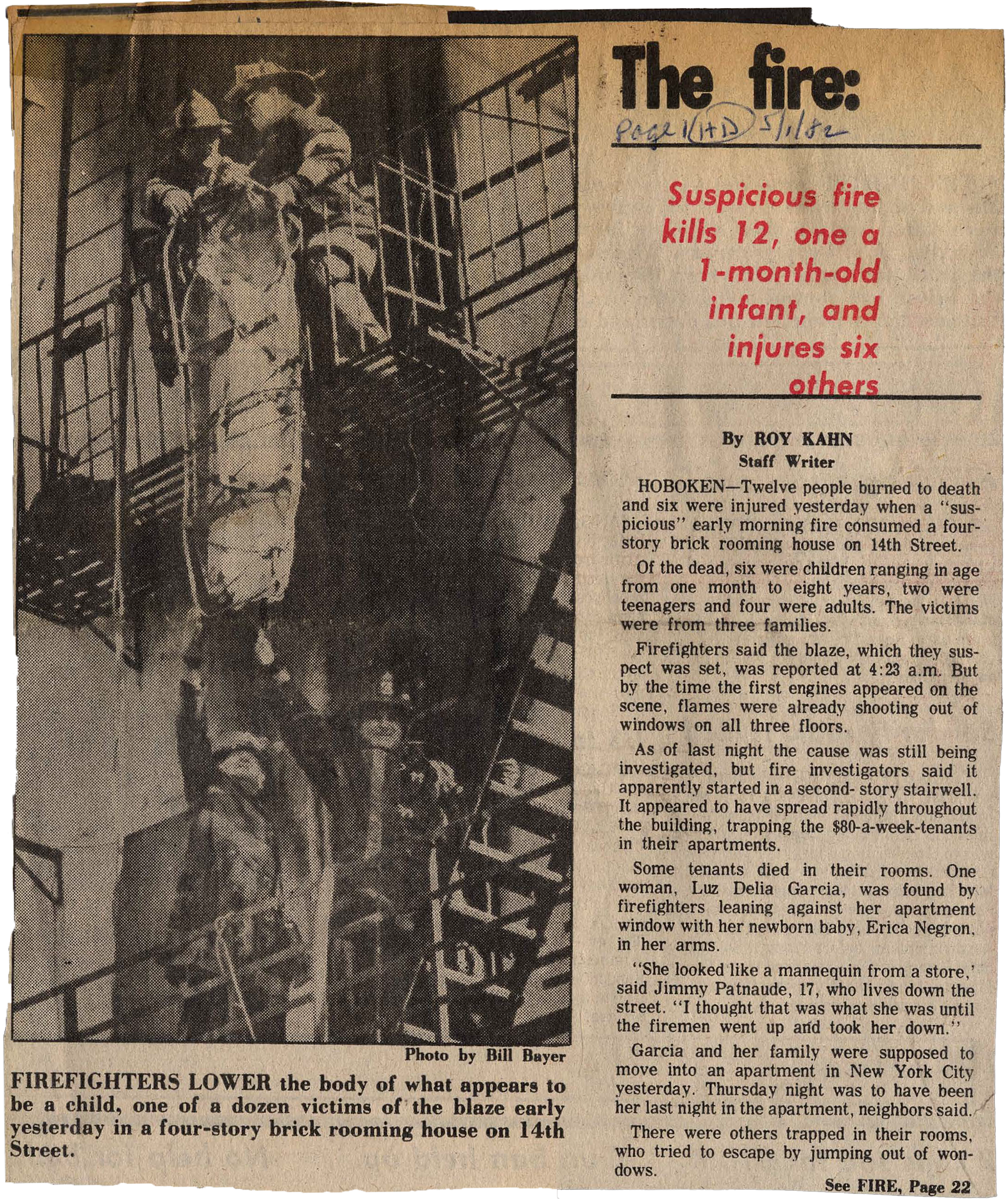 Kahn, Roy. “The Fire.” Hoboken Dispatch, 1 May 1982, p. 5.