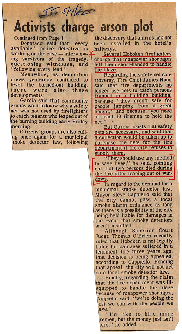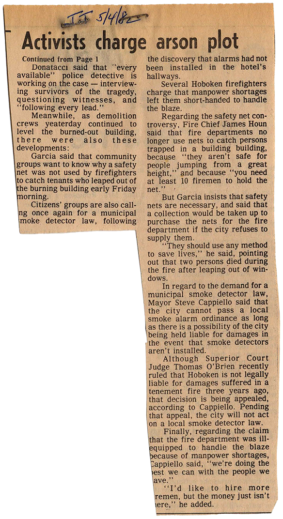 “Who torched hotel, killing 12?” Jersey Journal, 5 May 1982, p. 4.